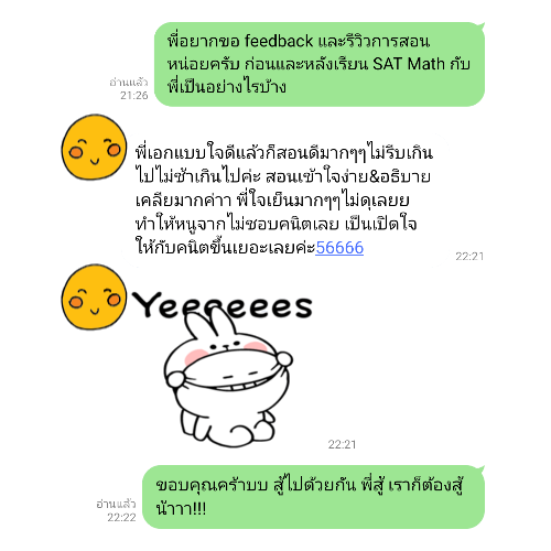 ความสำเร็จของนักเรียนที่เรียน SAT Math กับครูเอก SATMath.co